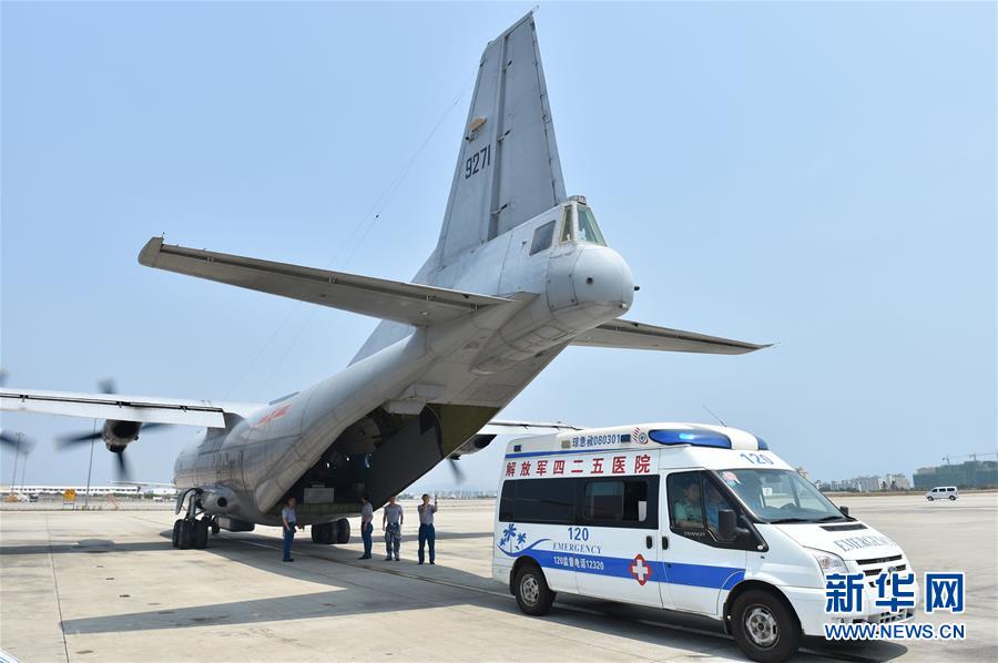 4月17日,海軍巡邏機(jī)轉(zhuǎn)運(yùn)重病工人抵達(dá)三亞鳳凰機(jī)場。當(dāng)日,一架正在南海執(zhí)行空中巡邏任務(wù)的海軍巡邏機(jī)緊急飛赴南沙,降落在永暑礁機(jī)場,將李萬美等3名重病工人轉(zhuǎn)運(yùn)至海南三亞425醫(yī)院接受救治。新華社發(fā)(高宏偉 攝)