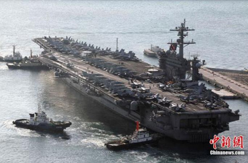 資料圖:曾為本拉登操持海葬的美國核動(dòng)力航空母艦“卡爾蜠森號(hào)”