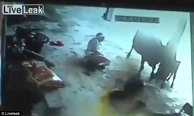 視頻中,母牛將兩人撞倒在地,并且還撞翻了他們的摩托車,防止其逃跑。西瑪在母牛的幫助下成功脫離險境,但由于之前已身中數(shù)刀無力前行,終于癱倒在地,不幸身亡。