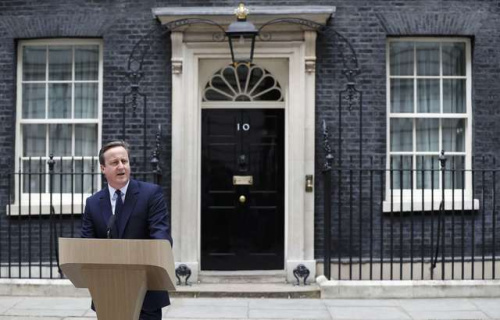 英國首相卡梅倫在唐寧街10號外就“脫歐公投”發(fā)表講話。