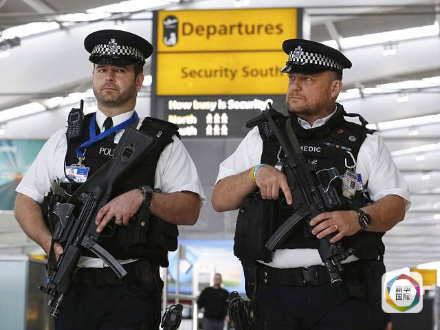圖為警察在希思羅機場5號航站樓內(nèi)巡邏。(圖片來源:新華/路透)