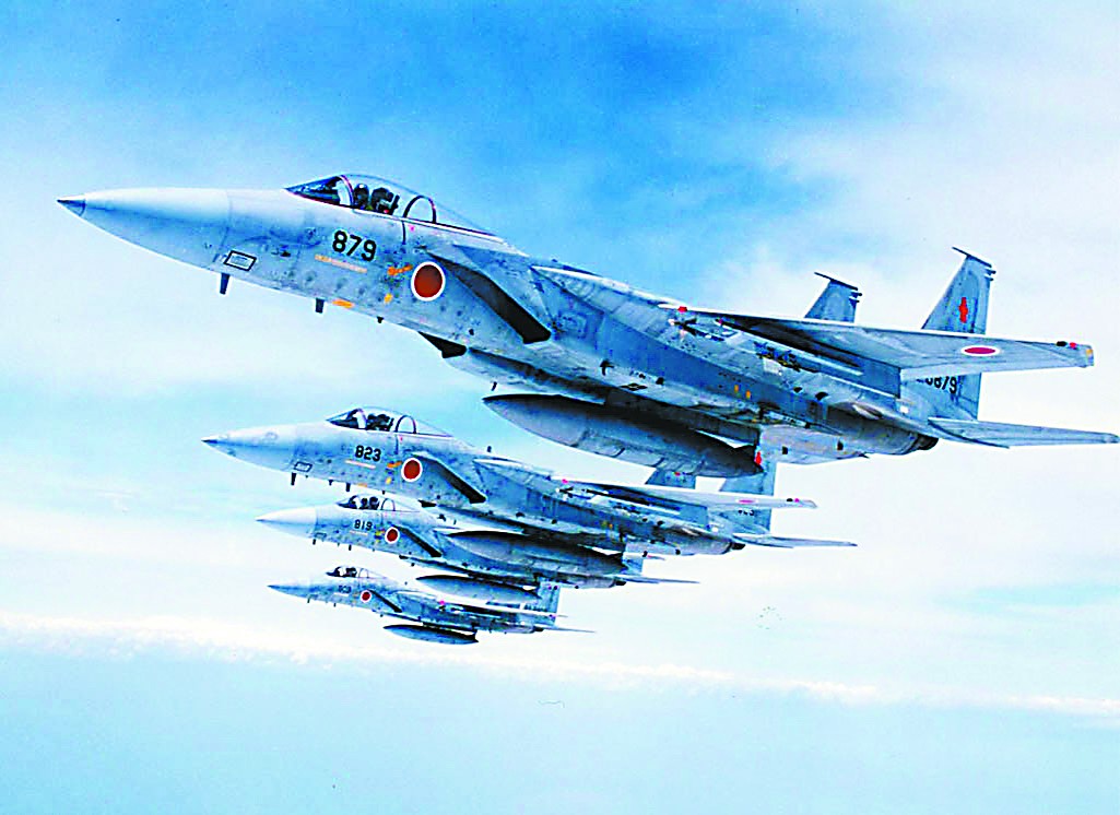 日本自衛(wèi)隊(duì)的F-15戰(zhàn)機(jī)在東海上空飛行。(資料圖)
