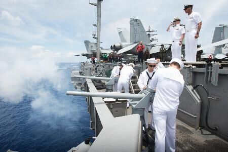 報(bào)道稱,“里根”號(hào)6月在菲律賓東部海域的西太平洋上,與“約翰·斯坦尼斯”號(hào)實(shí)施了雙航母聯(lián)合訓(xùn)練。由里根號(hào)及隨行的宙斯盾驅(qū)逐艦等組成的第五航母打擊群指揮官約翰·亞歷山大少將指出:“美國(guó)海軍遵照國(guó)際法,在西太平洋實(shí)施航行、飛行及任務(wù)已超過(guò)一個(gè)世紀(jì)。今后也將繼續(xù)!币源藦(qiáng)調(diào)本次活動(dòng)的正當(dāng)性。
