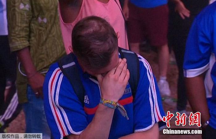 當(dāng)?shù)貢r間7月11日,2016歐洲杯決賽結(jié)束,法國隊痛失冠軍。賽后一名法國球迷在場外掩面哭泣,此時一名葡萄牙小球迷上前安慰。兩個不同國家不同年齡的球迷在決賽后握手擁抱,法國男子親吻葡萄牙小球迷頭部。