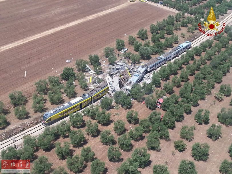 意大利發(fā)生火車相撞事故 車廂完全撞碎25人遇難
