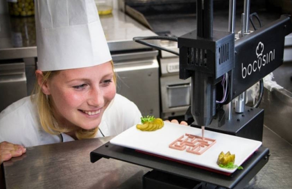 一家號(hào)稱全3D打印的餐館將于7月晚些時(shí)候在英國倫敦開張,不僅所有食物是3D“打印”而成,連餐桌、餐椅、燈具和餐具都出自這種技術(shù)。這家名為“食物墨水”的餐館將提供9種3D打印菜肴,并在網(wǎng)上直播“烹飪”過程。除了吃飯,顧客還可以在這家高技術(shù)氛圍濃厚的餐館體驗(yàn)虛擬現(xiàn)實(shí)技術(shù),欣賞電腦創(chuàng)作的音樂。餐館方面沒有透露3D打印菜肴的細(xì)節(jié),只說食物主要原料將呈醬狀,打印菜肴的過程類似面點(diǎn)師用擠花袋把奶油擠在蛋糕上做造型!笆澄锬比司M(fèi)250英鎊(約合2220元人民幣)的高價(jià)位招來質(zhì)疑:誰會(huì)花這么多錢吃一堆擠在塑料餐具里的漿糊?
