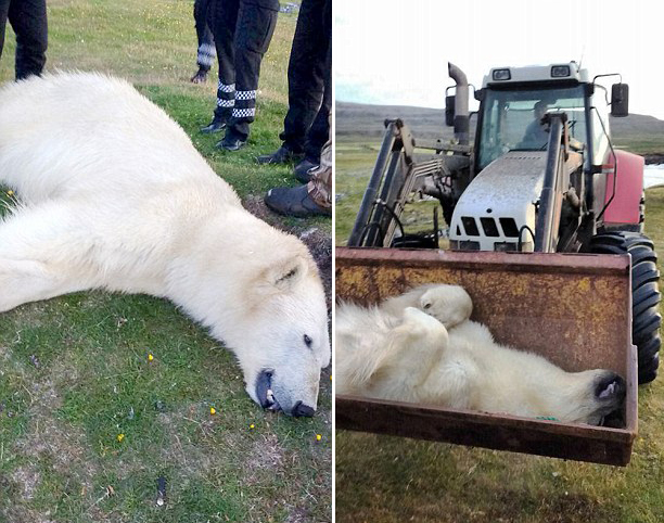 事發(fā)當(dāng)天,最先發(fā)現(xiàn)這頭北極熊的是一對夫婦,因為北極熊的上岸地點離他們的農(nóng)舍很近,他們連忙趕回家將孩子鎖在家里并通知鄰居將其射殺。