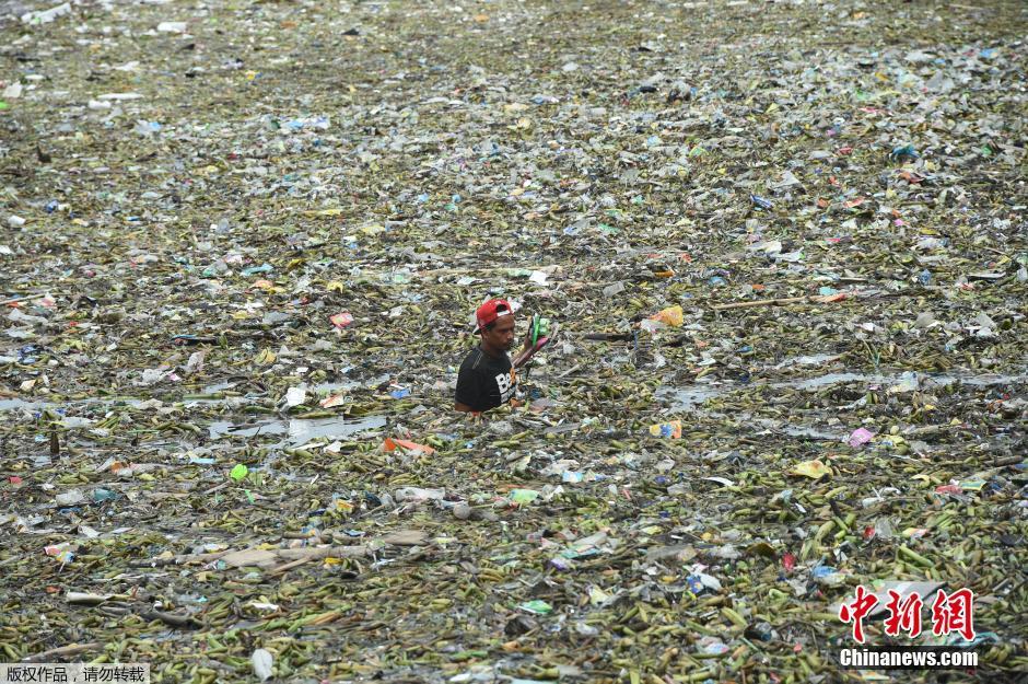 當(dāng)?shù)貢r(shí)間8月1日,菲律賓馬尼拉,一名男子清理臺(tái)風(fēng)妮妲掀起的巨浪帶來的垃圾。據(jù)菲律賓大氣地球物理和天文管理局表示,臺(tái)風(fēng)妮妲已經(jīng)離開菲律賓,但仍在影響北呂宋西北地區(qū)。