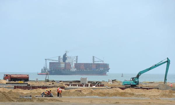 2013年8月15日,斯里蘭卡科倫坡,港口城項目施工建設(shè)進行中。