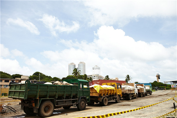 今年6月10日,科倫坡港口城停工令解除后首批石料運抵施工現(xiàn)場