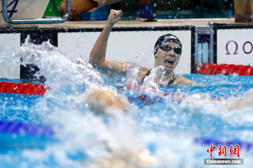 里約奧運(yùn)會(huì)女子400米自由泳決賽中,美國(guó)的選手萊德基摘得金牌,并打破該項(xiàng)目世界紀(jì)錄。中新網(wǎng)記者 富田 攝