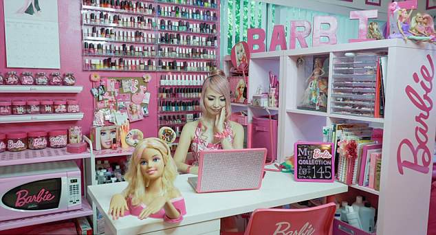 美國洛杉磯的34歲女子坂本梓(Azusa Sakamoto)癡迷芭比到了一種無法自拔的地步,她耗資7萬美元(約合人民幣46萬元)把自己的房子裝扮成了芭比宮殿,還將自己打造成了一個真人版的芭比娃娃。