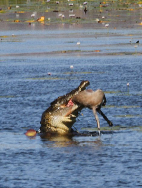 近日,攝影師唐娜德 萊克斯勒在其位于澳大利亞北部的住宅附近拍攝下了驚險(xiǎn)一幕,4.5米長(zhǎng)的巨鱷在30秒內(nèi)吞食了一只沙袋鼠。