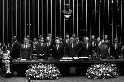 彈劾案通過后,特梅爾來到參議院,并在議員和內(nèi)閣部長(zhǎng)的見證下,正式就任巴西總統(tǒng)。