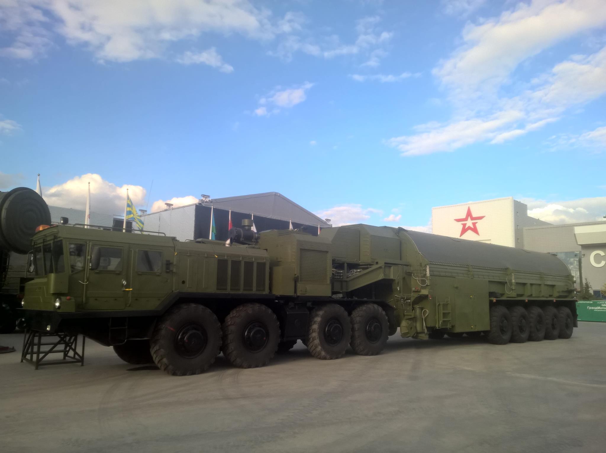 “布拉瓦”洲際彈道導(dǎo)彈采用三級火箭助推,使用固體燃料作為推進(jìn)劑,射程為10000公里。它是俄羅斯現(xiàn)在組成二次核打擊能力和核三位一體的組成部分。布拉瓦洲際彈道導(dǎo)彈隨著北風(fēng)之神”級首艇“尤里多爾戈魯基”號于2013年于1月10日正式服役。圖為布拉瓦導(dǎo)彈的運輸和裝載車輛。