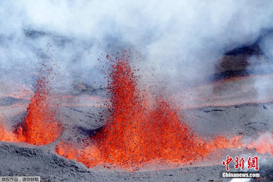 法國留尼旺島火山噴發(fā) 熔巖迸濺場面震撼