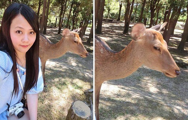 【環(huán)球網(wǎng)綜合報道】人們都喜歡在網(wǎng)上上傳和分享自己和有趣事物的合影,近日,一張人和小鹿的自拍照在網(wǎng)絡(luò)上爆紅。據(jù)英國《每日郵報》9月8日報道,臺灣一名游客在日本奈良游玩時,與當(dāng)?shù)氐囊恢恍÷拐樟藦埾。令人忍俊不禁的是,這只小鹿的表情十分到位,向舉著相機(jī)的游客投去了鄙視的眼神,仿佛在表達(dá)不滿。