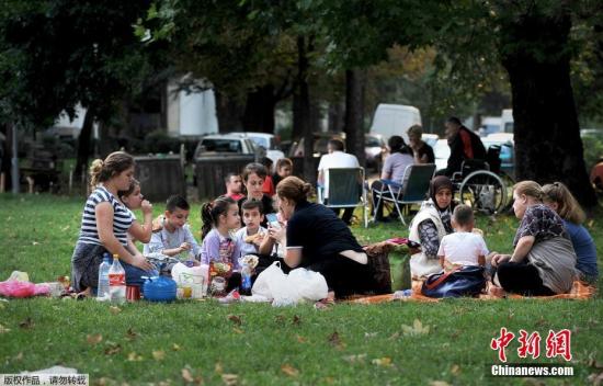 當(dāng)?shù)貢r間2016年9月11日,馬其頓Skpoje附近,當(dāng)?shù)匕l(fā)生5.3級地震,民眾在街頭和公園避難。