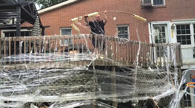 喬納森邀請(qǐng)朋友一起來(lái)幫忙完成這個(gè)“大工程”。他們將約10卷膠帶套在一個(gè)木棍上提高效率,然后開(kāi)始漫天地撕扯、纏繞,將房子的外圍、屋頂、甚至是廁所里都貼滿了膠帶。