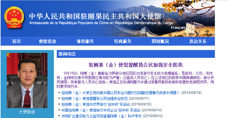 中國駐剛果(金)使館領(lǐng)事保護(hù)電話:0851474669