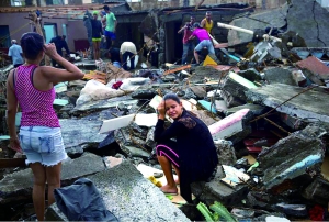 截至7日,強(qiáng)颶風(fēng)“馬修”在海地南部和西北部造成的死亡人數(shù)已超過(guò)877人。圖為受災(zāi)的海地居民在倒塌的房屋前。與此同時(shí),“馬修”7日抵達(dá)美國(guó)佛羅里達(dá)州并一路北上,佛州已有至少4人死亡,全州有逾100萬(wàn)戶停電。