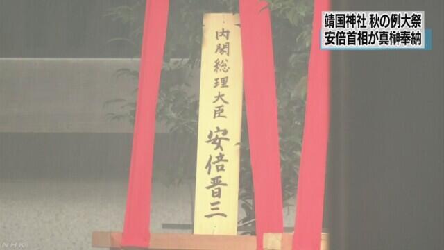 【環(huán)球網(wǎng)報(bào)道 記者 王歡】據(jù)日本NHK電視臺(tái)10月17日?qǐng)?bào)道,日本首相安倍晉三17日在秋季例行大祭開始之際,以“內(nèi)閣總理大臣”的名義,向供奉有“二戰(zhàn)”甲級(jí)戰(zhàn)犯的靖國(guó)神社供奉了名為“真榊”的祭品。