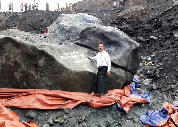 44歲的礦工紹敏(Sao Min)說:“發(fā)現(xiàn)這塊巨型寶石感覺像是中了彩票,但它是屬于國家的!碑(dāng)?shù)卣渭覅嵌ㄋ?U Tint Soe)也稱:“這塊玉原石有兩間小房子那么大,是上天賜給我們國家、政府和人民的一份禮物,是一個吉兆。”(實(shí)習(xí)編譯:任艷陽 審稿:朱盈庫)