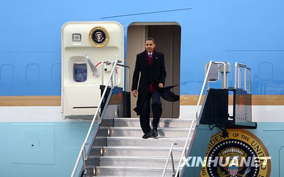美國(guó)總統(tǒng)奧巴馬抵達(dá)加拿大首都渥太華。新華社記者 楊士龍 攝