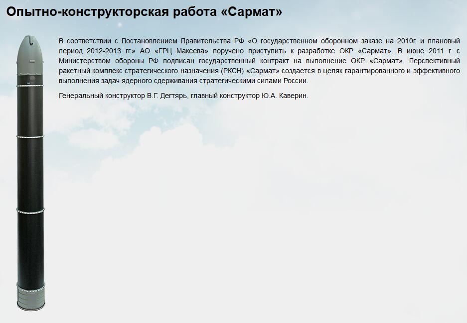 “撒旦二型”是北約說法,代號(hào)SS-X-30,俄方稱為RS28“薩爾馬特”(Sarmat)重型洲際導(dǎo)彈,現(xiàn)正密鑼緊鼓研制,希望今年內(nèi)首次試射,2018年投產(chǎn),2020年取代目前世界上體積最大、威力最大的現(xiàn)役導(dǎo)彈R-36M “撒旦”。