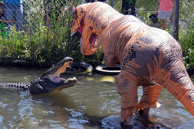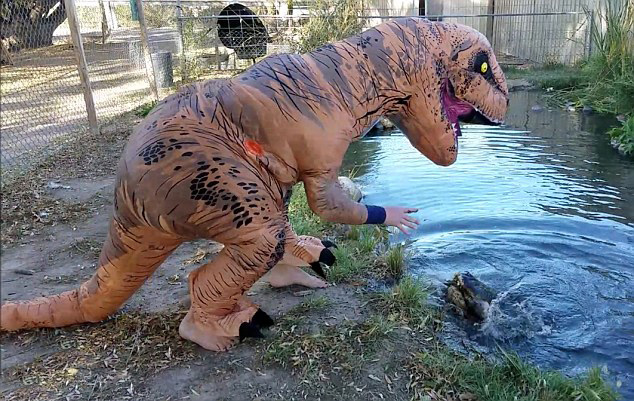 【環(huán)球網(wǎng)綜合報道】據(jù)英國《每日郵報》10月26日報道,在美國科羅拉多州的鱷魚爬行動物園,一名男管理員把自己打扮成“霸王龍”,手里還拿著一條魚戲弄水中大鱷魚,好在這條名為莫里斯(Morris)的鱷魚經(jīng)過訓(xùn)練,未對該男子造成傷害。