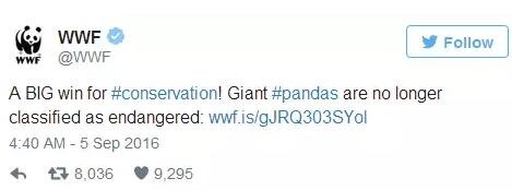 世界自然基金會(WWF)馬上在推特上公布了這一好消息:
