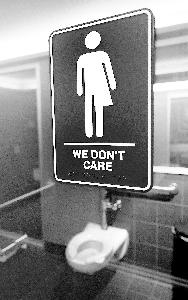 美國北卡羅來納州一處酒店廁所外貼著寫有“我們不在乎”的標(biāo)識(shí)以抗議“歧視跨性別者”。有關(guān)跨性別者平權(quán)問題在美國涉及“政治正確”。