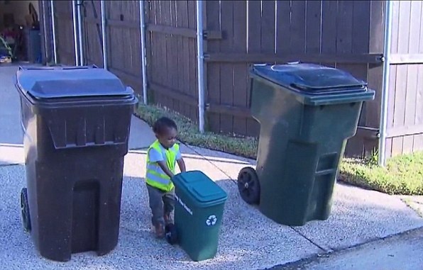 【環(huán)球網(wǎng)綜合報(bào)道】據(jù)英國(guó)《每日郵報(bào)》11月15日?qǐng)?bào)道,在美國(guó)得克薩斯州的普萊諾,2歲的小男孩蘭斯·魯弗斯(Lance Rufus)和他最好的朋友、垃圾工人詹姆士·杰克遜(James Jackson)每周一都會(huì)開著垃圾車收垃圾,現(xiàn)在蘭斯已經(jīng)有了自己的微型回收站和配套的反光背心。