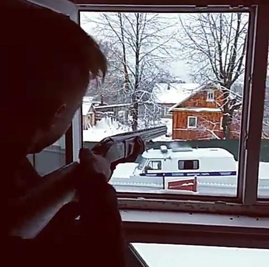 視頻中,警察跟蹤包圍了他們所在的房屋,但這對情侶還在房間里開玩笑,卡佳還曾舉槍對準(zhǔn)丹尼斯的頭。當(dāng)?shù)つ崴瓜蚓囬_槍時,卡佳尖叫了一聲,隨后繼續(xù)發(fā)出笑聲。