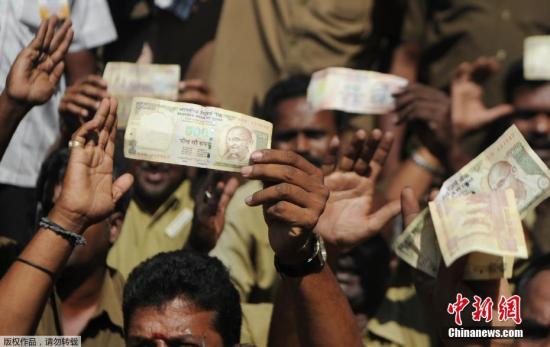 當(dāng)?shù)貢r(shí)間2016年11月23日,印度金奈,民眾抗議廢除大面額紙幣。8日晚,印度總理莫迪突然宣布,從9日起廢止面值500盧比和1000盧比的兩種大鈔,以打擊腐敗和黑錢交易。