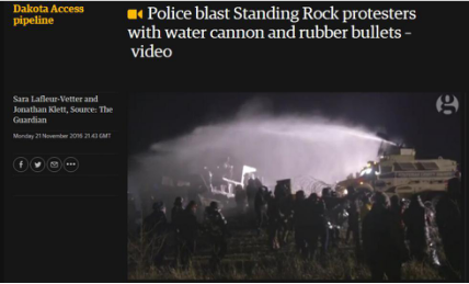 警方的粗暴執(zhí)法,引發(fā)了輿論的極大關(guān)注。英國(guó)《衛(wèi)報(bào)》引用北達(dá)科他州民權(quán)組織領(lǐng)導(dǎo)簡(jiǎn)·庫(kù)克(Jen Cook)的話說(shuō):“這種行為罔顧非武裝抗議者的人道和安全,濫用非致命武器,是非常不合理的。此外,《華盛頓郵報(bào)》、《赫芬頓郵報(bào)》以及CNN等媒體,都對(duì)抗議引發(fā)的沖突進(jìn)行了持續(xù)報(bào)道。