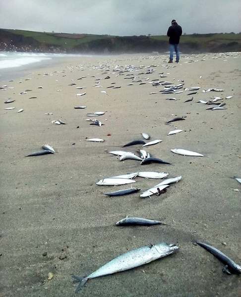 【環(huán)球網(wǎng)綜合報道】據(jù)英國《每日郵報》12月5日報道,12月4日,英國男子愛德華·波爾(Edward Bol)在康奈爾郡噴特宛(Pentewan)海灘上遛狗時發(fā)現(xiàn)數(shù)以千計的鯖魚和鯡魚尸體。專家稱這種現(xiàn)象實屬罕見,或因惡劣天氣導(dǎo)致魚群死亡后被沖刷上岸。