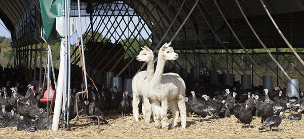 據(jù)悉,農(nóng)場(chǎng)主湯姆·卡帕斯(Tom Copas)已經(jīng)養(yǎng)雞58年了。他采用自由放養(yǎng)法,讓數(shù)萬只火雞在櫻桃園和草地上隨意活動(dòng),因而常會(huì)遭到狐貍的迫害。于是,湯姆利用羊駝天生的警覺性來保護(hù)火雞群。