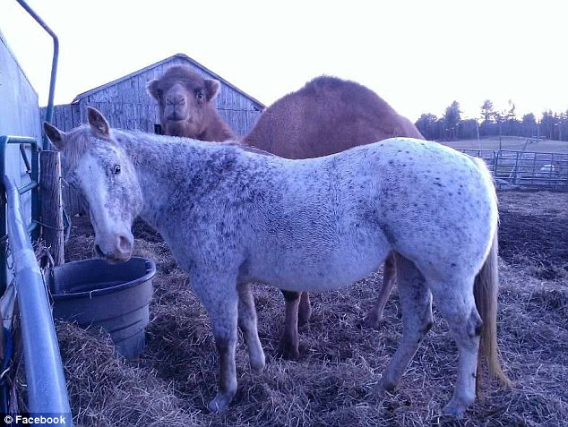 據(jù)英國《每日郵報(bào)》12月11日?qǐng)?bào)道,近日,美國緬因州“Pony X-Press Zoo”動(dòng)物園中的一匹失明的馬兒和一頭駱駝吸引了大眾的眼球,因?yàn)檫@頭“熱心”的駱駝凱撒(Caesar)竟然出色地?fù)?dān)起了對(duì)馬好友多莉(Dolly)的導(dǎo)盲工作,它們的日常友誼令人大呼有愛。