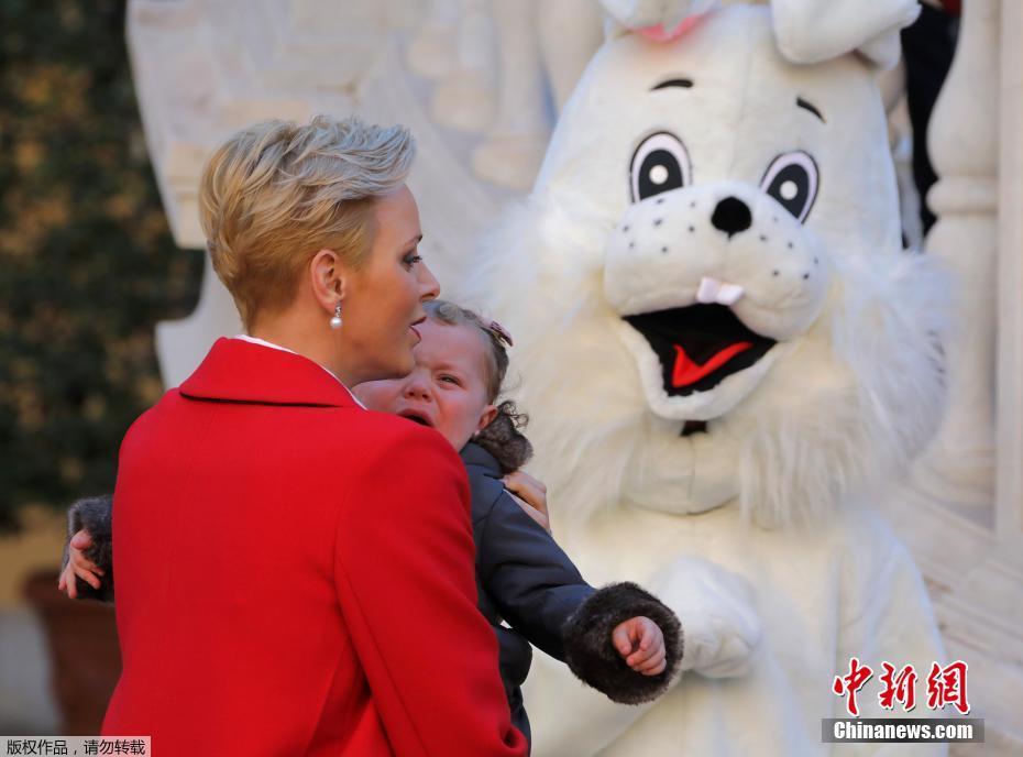 當(dāng)?shù)貢r(shí)間2016年12月14日,摩納哥親王阿爾伯特二世與妻子夏琳王妃帶著龍鳳胎寶寶雅克小王子和加布里埃爾小公主在王宮出席官方圣誕樹(shù)典禮。小公主被現(xiàn)場(chǎng)的“兔子”嚇哭。