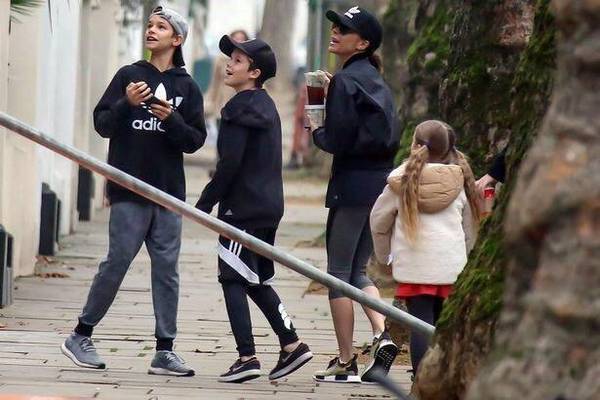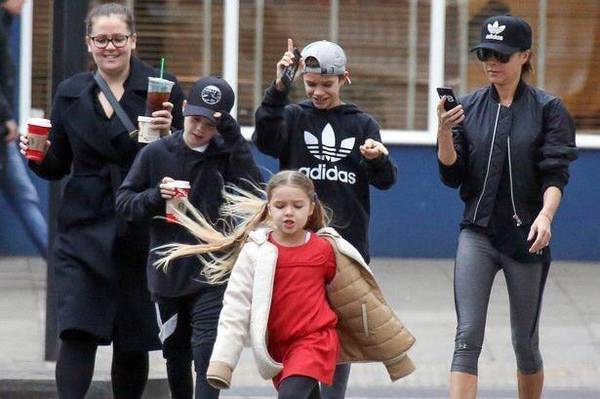 照片中一家四口打扮隨意,小七扎著兩條大長(zhǎng)辮,身旁沒(méi)了老爸小貝和大哥布魯克林在,小七一路蹦蹦跳跳地跟著媽媽,能看出四個(gè)人特別開(kāi)心,在過(guò)馬路的時(shí)候小七更是一副大姐范兒的走在眾人前面。