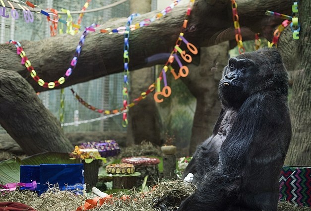 中新網(wǎng)12月25日電 據(jù)外媒報道,正當(dāng)大家歡度圣誕佳節(jié),美國哥倫布動物園暨水族館的大猩猩科洛(Colo)則喜迎她的60歲大壽。科洛是世界上第一只出生在動物園、美國最老的大猩猩,它已比大猩猩預(yù)期壽命長20年,至今兒孫滿堂。