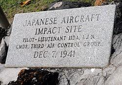 飯?zhí)锓刻鋵?shí)是1971年美國(guó)人安放在其墓地的一塊石頭說(shuō)明,以示和其他美軍士兵墓地的區(qū)別。石塊上只刻有“日本軍機(jī)撞擊墜毀點(diǎn),飛行員飯?zhí)锎笪、第三制空?duì)指揮官,1941年12月7日”。