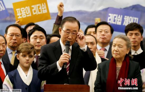 資料圖:當?shù)貢r間2017年1月12日,韓國仁川,卸任的聯(lián)合國前秘書長潘基文返回韓國。在回國之后,潘基文在仁川機場發(fā)表對國民信息,他被認為是下屆韓國總統(tǒng)的有力競爭者。
