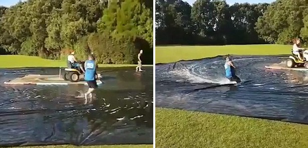 據(jù)英國《每日郵報》1月19日報道,新西蘭漢密爾頓的兩個男子利用割草機(jī)和一大塊防水布打造了一個“滑冰場”。他們將一大塊防水布鋪在草地上,割草機(jī)放在中央,并把一根滑雪纜繩綁在上面,在割草機(jī)的帶動下,人抓著繩子就可以在防水布上自由滑動。