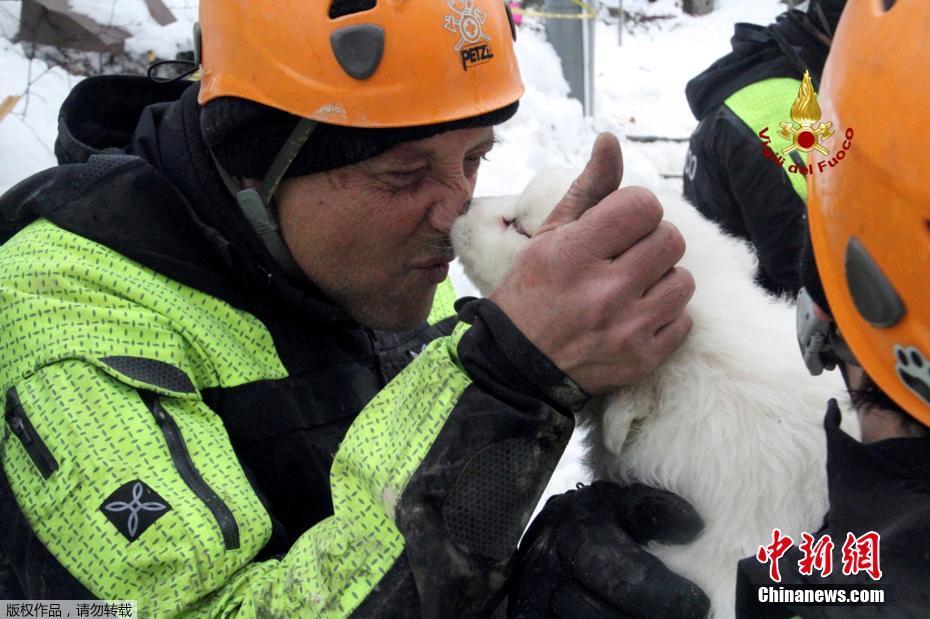 當?shù)貢r間1月23日,意大利救援人員在被雪掩埋的酒店附近找到三只被埋的狗寶寶。三個呆萌小家伙的獲救讓工作人員喜出望外,熱情地對它們又抱又親。意大利中部的一處滑雪度假酒店當?shù)貢r間1月18日遭到雪崩掩埋,造成賓館內(nèi)超30人失蹤。
