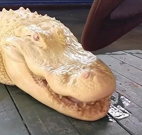 【環(huán)球網(wǎng)綜合報(bào)道】據(jù)英國《每日郵報(bào)》1月23日報(bào)道,近日,一段視頻顯示,美國佛羅里達(dá)州奧蘭多鱷魚島主題公園內(nèi)的白化短吻鱷米特·佩爾(Meet Pearl)爬出水面,一身純白色皮膚和粉紅色眼睛甚是引人注意。