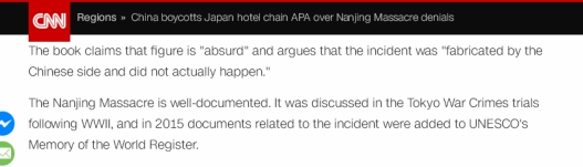 回顧這一事件的始末,從日本政客到企業(yè)界,再到部分網(wǎng)民,他們的言行不斷刷新著民眾的“三觀”。在鐵證如山的歷史事實(shí)面前,日本的表現(xiàn)讓人切切實(shí)實(shí)感受到“陰魂逼人”。此事不僅引發(fā)了各國(guó)民眾的強(qiáng)烈憤慨,多國(guó)媒體也一齊發(fā)力聲討:APA,你該還歷史一個(gè)清白,還受害者一個(gè)公道。