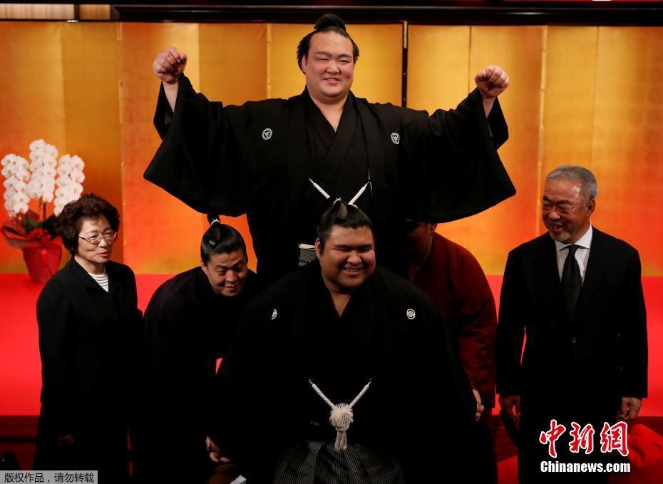 當?shù)貢r間2017年1月25日,日本東京,日本相撲運動員稀勢之里出席晉級儀式,由大關(guān)等級晉升為最高的橫綱,與上一次日本出生的相撲力士晉升為橫綱相距19年。