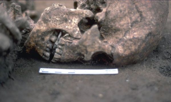 英國考古學家發(fā)現一具令人驚駭的男性尸骨,他的舌頭被人割下后再塞進石頭。(英國《衛(wèi)報》)